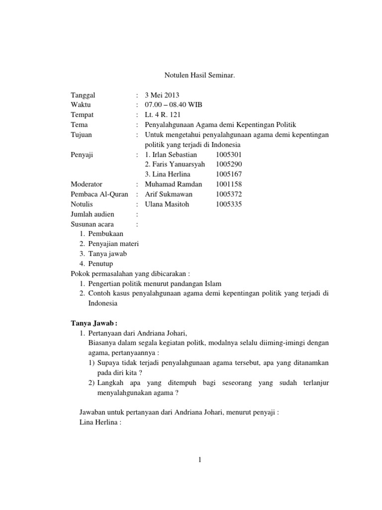 Contoh Notulen Rapat - Contoh Vess from imgv2-2-f.scribdassets.com Maybe you would like to learn more about one of these? Check spelling or type a new query. Cara membuat resume hasil diskusi. We did not find results for: